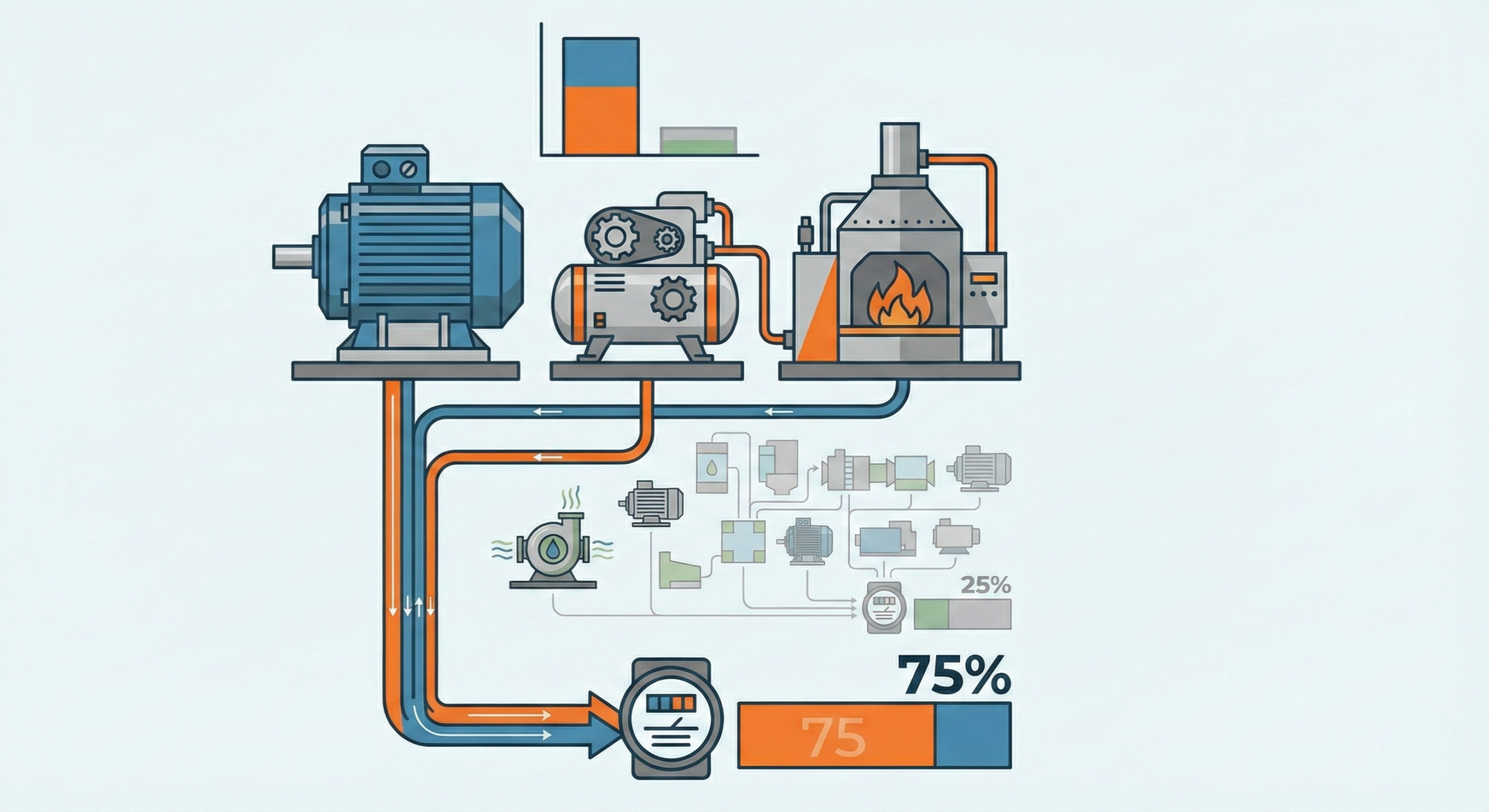 La loi de Pareto appliquée à l'énergie révèle une réalité incontournable : dans la plupart des usines, 75% de la consommation énergétique provient de seulement 2 familles d'usages - le process thermique (55%) et la force motrice (20%). Maîtriser ce principe, c'est concentrer vos efforts là où l'impact est maximal.